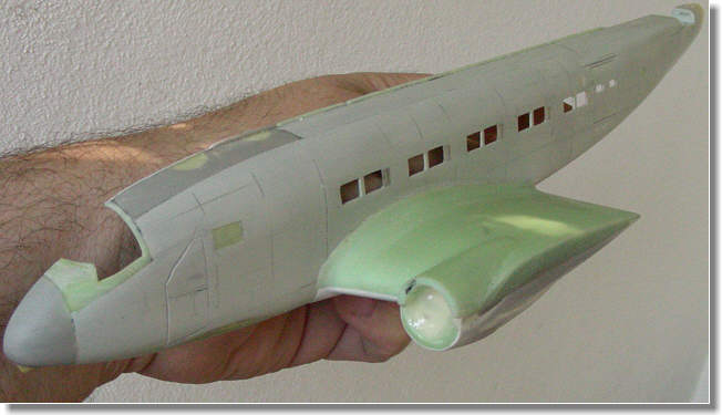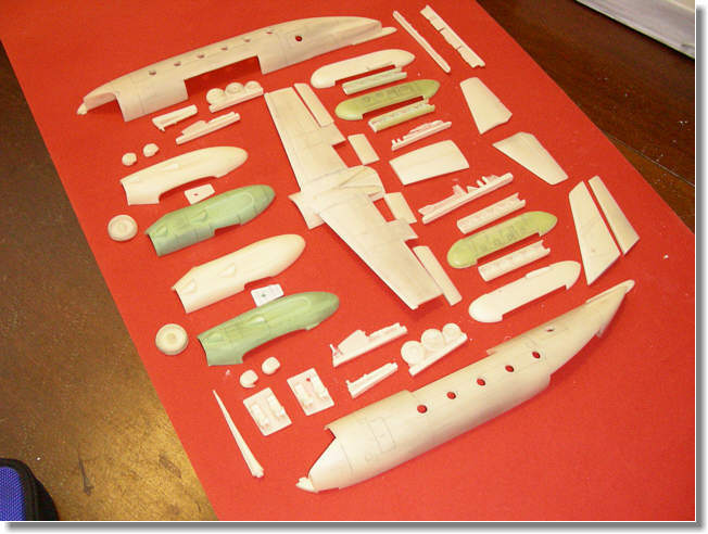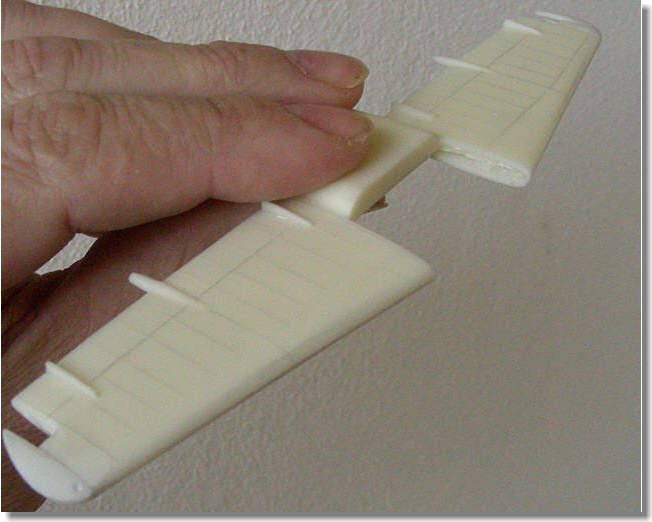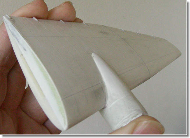 in einem Stück gegossen. Die Flügelwurzel mit inneren Motoransätzen sind nun schon am Rumpf montiert, was den Zusammenbau